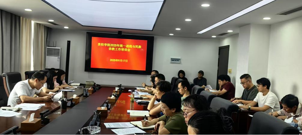 2025年9月17日,为深入贯彻落实习近平总书记关于新时代统一战线与民族宗教工作的重要指示精神,全面提升学校统战民族宗教工作队伍的政治站位和专业化水平,贵阳学院统战部召开2025年度统一战线与民族宗教工作培训会,由统战部部长贺忠主持宣讲,学校各民主党派负责人、无党派人士代表、知联会负责人、留联会负责人以及二级党委统战委员参加了培训。